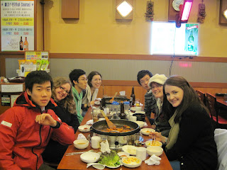 Anyway, New Years was good. It wasn't the usual party I'm used to (I've been spoiled at home), but we did all get together at Joseph and Alex's apartment with a bunch of Korean friends to celebrate. We had some really bad champagne and wiled away the hours. Twenty some people were never made to fit into the apartment, but we made it work. At about 1 am we got kicked out by the neighbors. In Korea they celebrate the Lunar New Year, so we were, in there view, just making noise for no good reason on a Monday night. The good thing about the fact Koreans don't celebrate it, however, is that the bars were still open, so we went there instead and they put up with us while we kept singing and drinking.